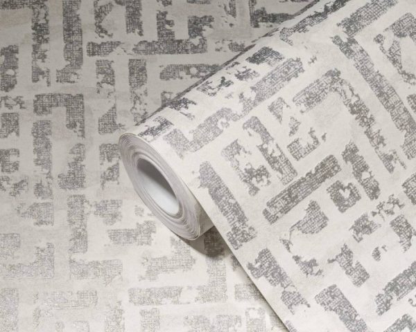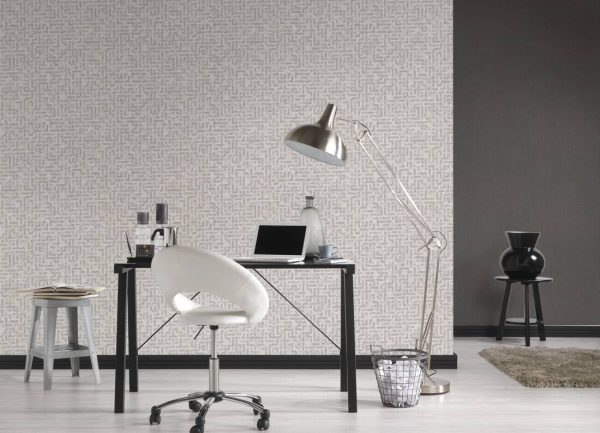 Medidas: 10,05 m x 0,53 m. Case: 64 / 32 cm (offset match). Calidad: Tejido no tejido. Estilo: Papel pintado geométrico en color blanco/plata.