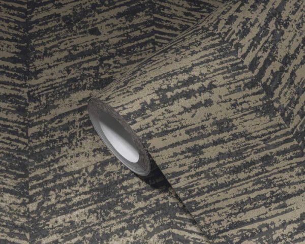 Medidas: 10,05 m x 0,53 m. Case: 64 cm (straight match). Calidad: Tejido no tejido. Estilo: Papel pintado geométrico diseño espiga en color negro con detalles metalizados.
