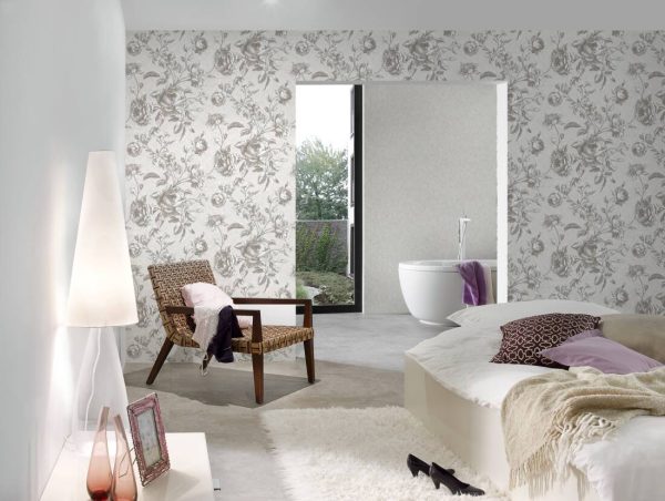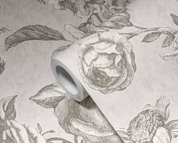Medidas: 10,05 m x 0,53 m. Case: 64 / 32 cm (offset match). Calidad: Tejido no tejido. Estilo: Papel pintado floral diseño rosas en color blanco/gris.