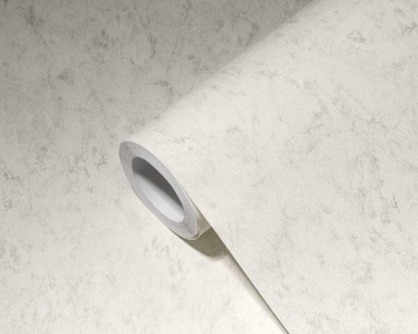 Estilo: Papel pintado liso efecto yeso en color crema.