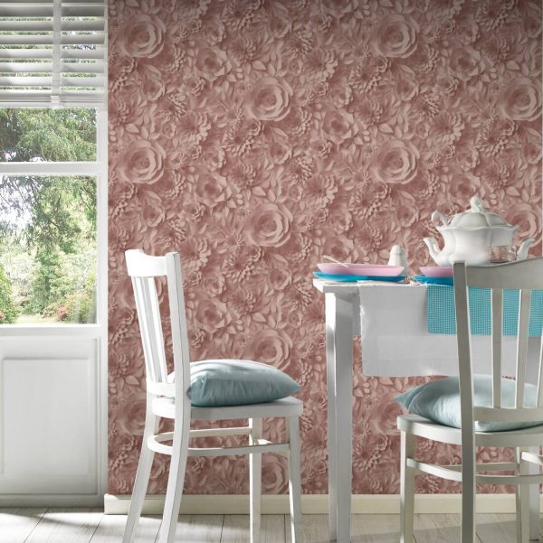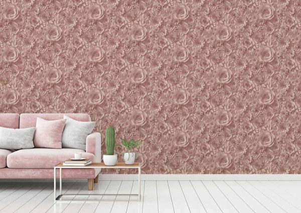 Medidas: 10,05 m x 0,53 m. Case: 53 / 26 cm (offset match). Calidad: Tejido no tejido. Estilo: Papel pintado patrón geométrico de rosas en color salmón.