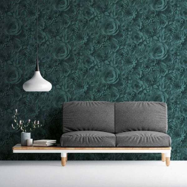 Medidas: 10,05 m x 0,53 m. Case: 53 / 26 cm (offset match). Calidad: Tejido no tejido. Estilo: Papel pintado patrón geométrico de rosas en color azul turquesa.