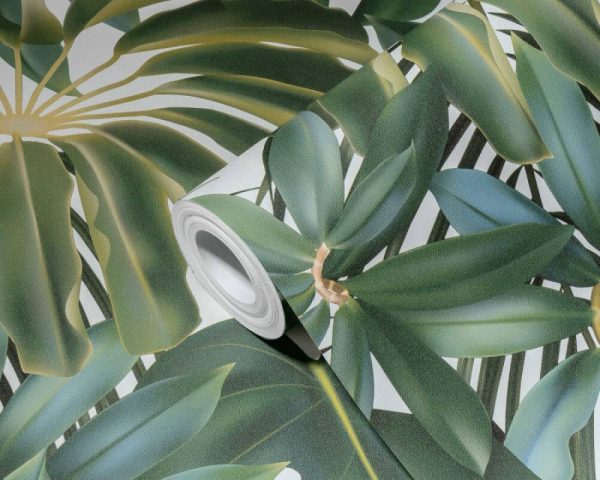 Medidas: 10,05 m x 0,53 m. Case: 53 / 26 cm (offset match). Calidad: Tejido no tejido. Estilo: Papel pintado estilo tropical diseño vegetación selvática en color verde.