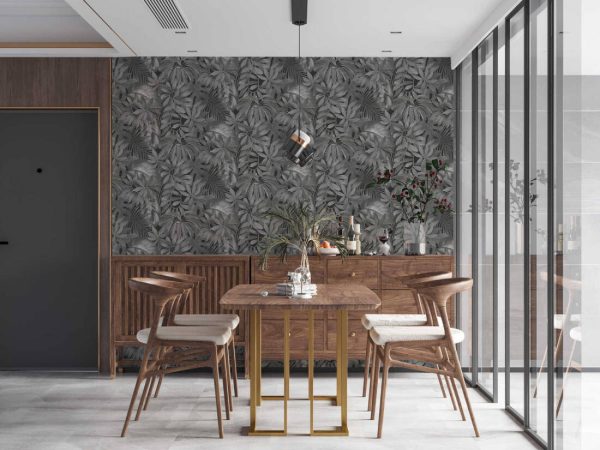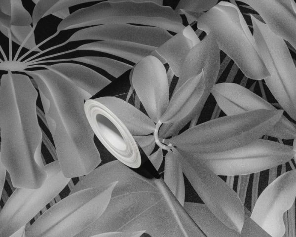 Medidas: 10,05 m x 0,53 m. Case: 53 / 26 cm (offset match). Calidad: Tejido no tejido. Estilo: Papel pintado estilo tropical diseño vegetación selvática en color gris.