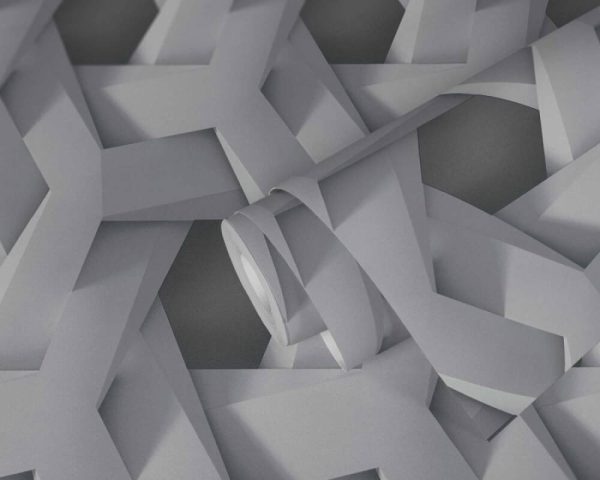 Medidas: 10,05 m x 0,53 m. Case: 64 cm (straight match). Calidad: Tejido no tejido. Estilo: Papel pintado patrón geométrico efecto 3D en color gris/blanco.