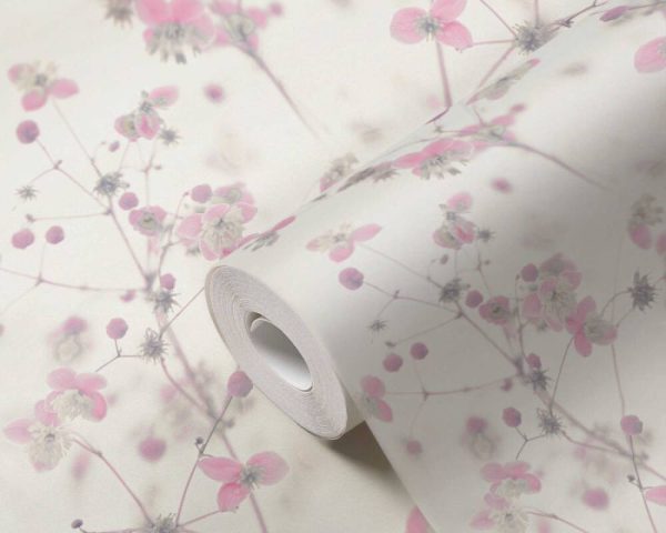 Medidas: 10,05 m x 0,53 m. Case: 64 / 32 cm (offset match). Calidad: Tejido no tejido. Estilo: Papel pintado floral diseño árbol en flor en color crema/rosa.