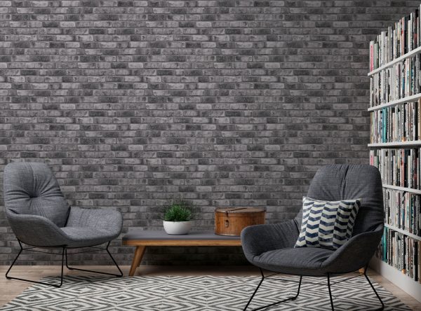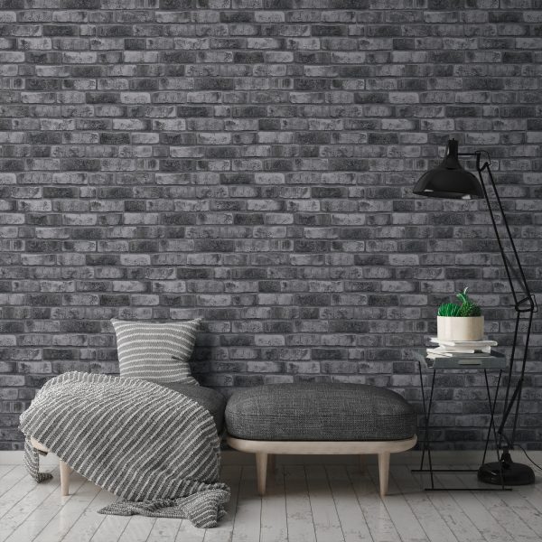 Medidas: 10,05 m x 0,53 m. Case: 53 / 26 cm (offset match). Calidad: Tejido no tejido. Estilo: Papel pintado efecto ladrillo visto en color negro y gris.