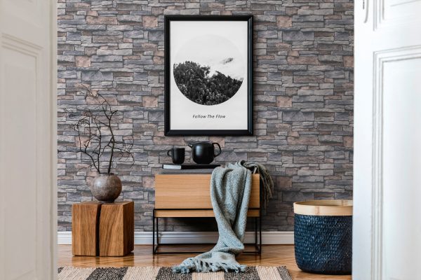 Medidas: 10,05 m x 0,53 m. Case: 64 / 32 cm (offset match). Calidad: Tejido no tejido. Estilo: Papel pintado efecto piedra en color gris y beige.