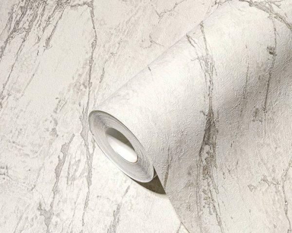 Medidas: 10,05 m x 0,53 m. Case: 64 / 32 cm (offset match). Calidad: Tejido no tejido. Estilo: Papel pintado efecto mármol en color gris. Acabado satinado texturado.