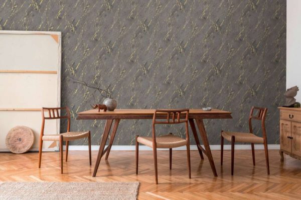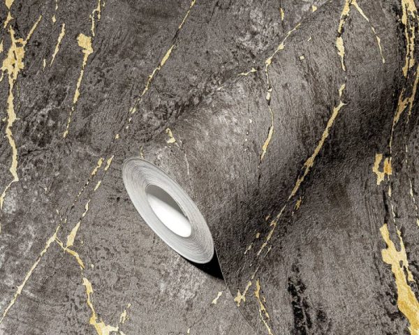 Medidas: 10,05 m x 0,53 m. Case: 64 / 32 cm (offset match). Calidad: Tejido no tejido. Estilo: Papel pintado efecto mármol en color negro con la veta dorada. Acabado satinado texturado.