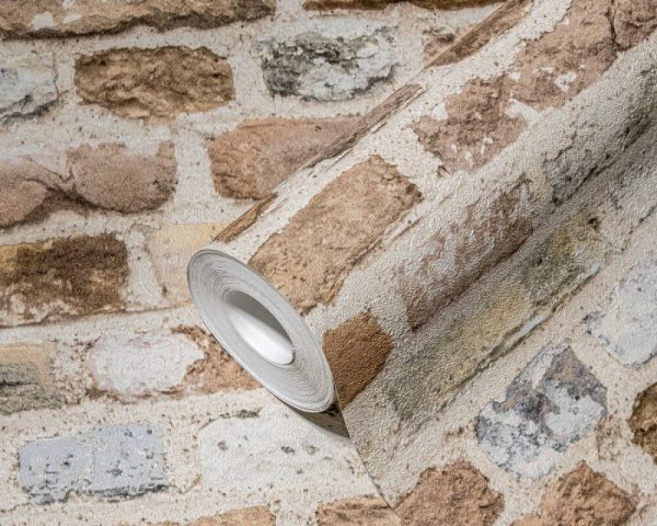 Medidas: 10,05 m x 0,53 m. Case: 64 / 32 cm (offset match). Calidad: Tejido no tejido. Estilo: Papel pintado efecto ladrillo visto en color beige, marrón y crema.