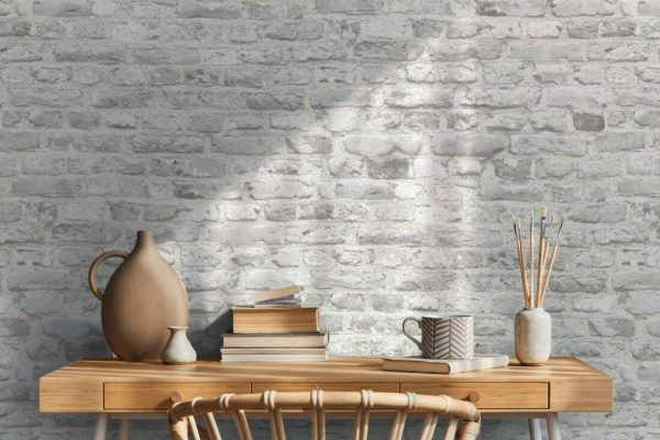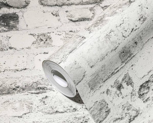 Medidas: 10,05 m x 0,53 m. Case: 64 / 32 cm (offset match). Calidad: Tejido no tejido. Estilo: Papel pintado efecto ladrillo visto en color gris y blanco.