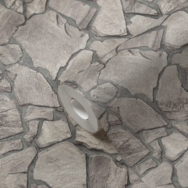 Medidas: 10,05 m x 0,53 m. Case: 64 / 32 cm (offset match). Calidad: Tejido no tejido. Estilo: Papel pintado efecto piedra en color gris.