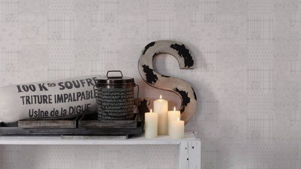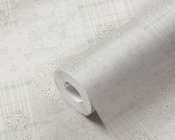 Medidas: 10,05 m x 0,53 m. Case: 26 cm (straight match). Calidad: Tejido no tejido. Estilo: Papel pintado diseño patchwork en color gris y blanco. Acabado vinílico.