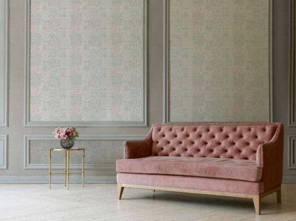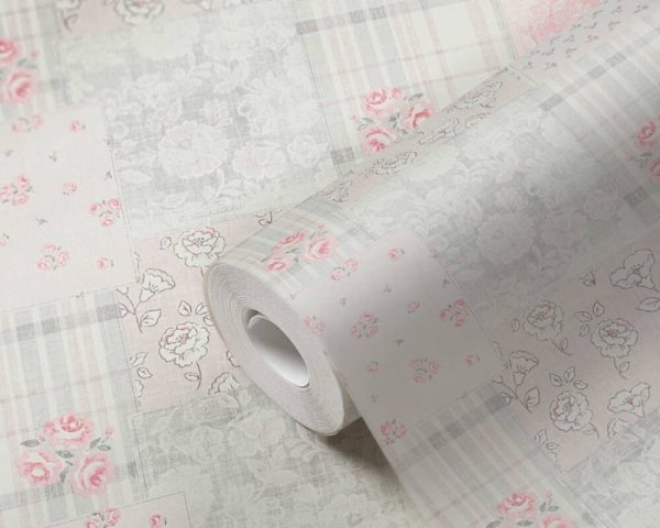 Medidas: 10,05 m x 0,53 m. Case: 26 cm (straight match). Calidad: Tejido no tejido. Estilo: Papel pintado diseño patchwork en color rosa, gris y crema. Acabado vinílico.