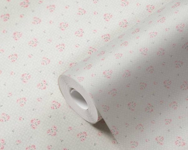 Medidas: 10,05 m x 0,53 m. Case: 11 cm (straight match). Calidad: Tejido no tejido. Estilo: Papel pintado rosas en color rosa sobre fondo patrón geométrico beige. Acabado vinílico.