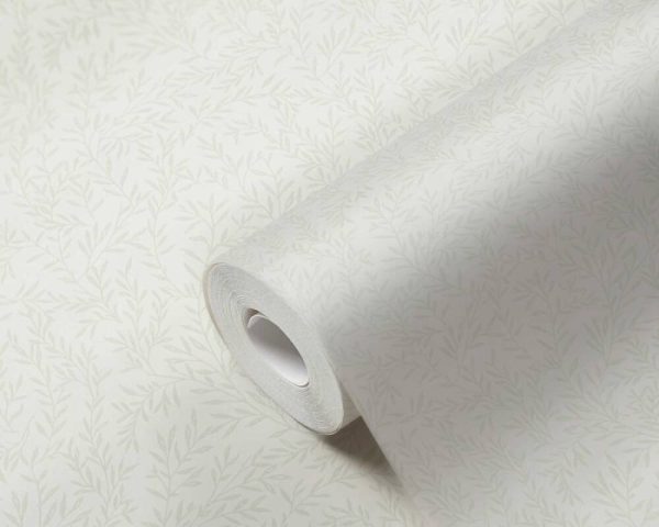 Medidas: 10,05 m x 0,53 m. Case: 13 cm (straight match). Calidad: Tejido no tejido. Estilo: Papel pintado ramitas verde agua sobre fondo gris. Acabado vinílico.