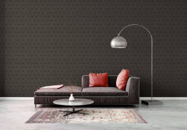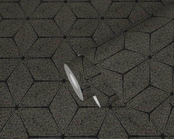 Medidas: 10,05 m x 0,53 m. Case: 16 cm (straight match). Calidad: Tejido no tejido. Estilo: Papel pintado gráfico diseño geométrico en color negro y dorado. Acabado vinílico.
