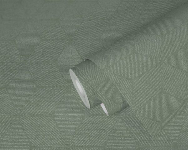 Medidas: 10,05 m x 0,53 m. Case: 16 cm (straight match). Calidad: Tejido no tejido. Estilo: Papel pintado gráfico diseño geométrico en color verde. Acabado vinílico.