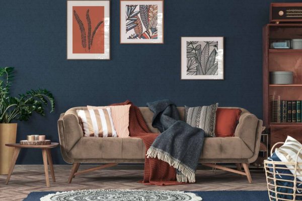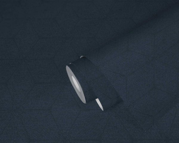 Medidas: 10,05 m x 0,53 m. Case: 16 cm (straight match). Calidad: Tejido no tejido. Estilo: apel pintado gráfico diseño geométrico en color azul marino. Acabado vinílico.