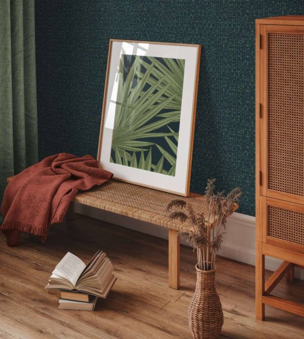 Medidas: 10,05 m x 0,53 m. Case: 26 cm (straight match). Calidad: Tejido no tejido. Estilo: Papel pintado geométrico en color azul marino y verde jade. Acabado vinílico.
