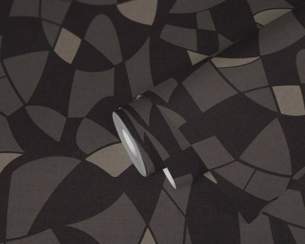 Medidas: 10,05 m x 0,53 m. Case: 64 / 32 (offset match). Calidad: Tejido no tejido. Estilo: Papel pintado gráfico diseño geométrico en color beige, marrón topo y negro. Acabado vinílico.