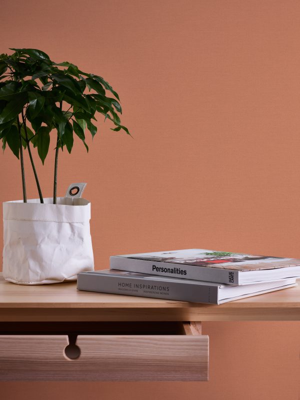 Medidas: 10,05 m x 0,53 m. Case: Sin case. Calidad: Tejido no tejido. Estilo: Papel pintado liso en color naranja/salmón.
