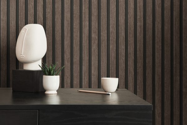 Medidas: 10,05 m x 0,53 m. Case: Sin case. Calidad: Tejido no tejido. Estilo: Papel pintado efecto listones de madera natural en color negro.