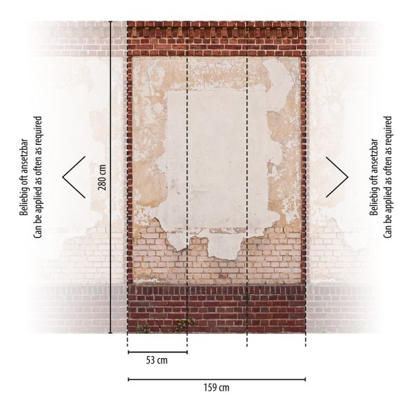 Medidas: 2,80 m x 1,59 m. Case: Sin case. Calidad: Tejido no tejido. Estilo: Mural ladrillos.