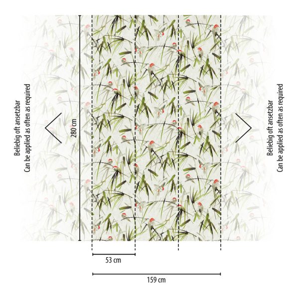 Medidas: 2,80 m x 1,59 m. Case: Sin case. Calidad: Tejido no tejido. Estilo: Mural pájaros.