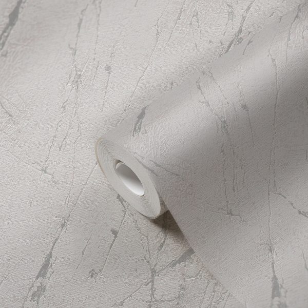 Medidas: 10,05 m x 0,53 m. Case: 64 / 32 cm (offset match). Calidad: Tejido no tejido. Estilo: Papel pintado aspecto escayola y efecto metálico en color blanco y gris.