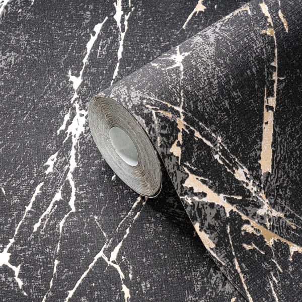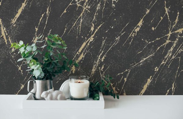 Medidas: 10,05 m x 0,53 m. Case: 64 / 32 cm (offset match). Calidad: Tejido no tejido. Estilo: Papel pintado efecto escayola y detalles metálicos en color negro y dorado.