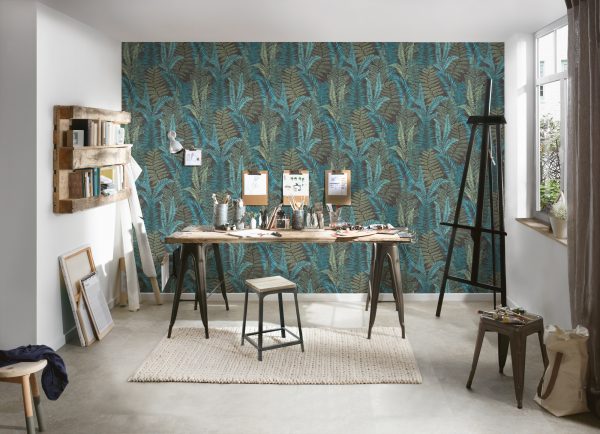 Medidas: 10,05 m x 0,53 m. Case: 64/32 cm (offset match). Calidad: Tejido no tejido. Estilo: Papel pintado hojas. Estilo Floral. En color negro, verde y azul.