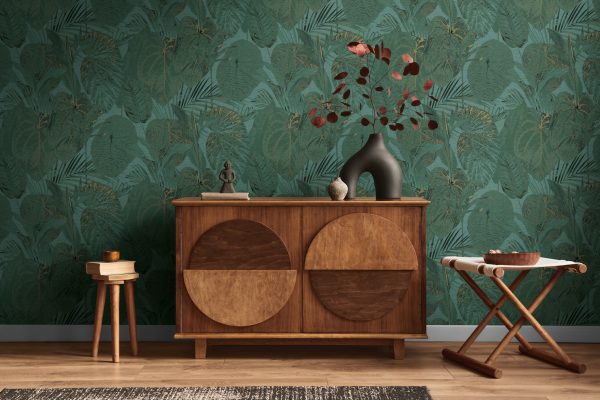 Medidas: 10,05 m x 0,53 m. Case: 64/32 cm (offset match). Calidad: Tejido no tejido. Estilo: Papel pintado hojas. Estilo Floral. En color verde y dorado.