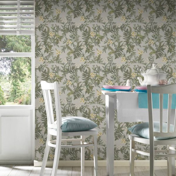 Medidas: 10,05 m x 0,53 m. Case: 53/0 cm (case recto). Calidad: Tejido no tejido. Estilo: Papel pintado de flores. Estilo Floral. En color gris, verde y amarillo.