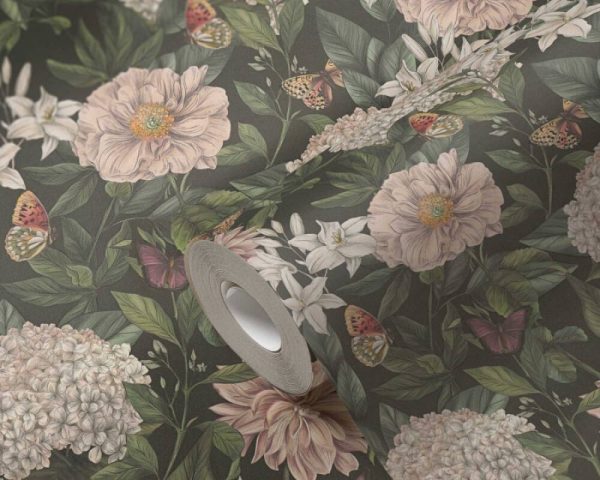 Medidas: 10,05 m x 0,53 m. Case: 53/0 cm (case recto). Calidad: Tejido no tejido. Estilo: Papel pintado flores. Estilo Floral. En color negro, verde y rosa.