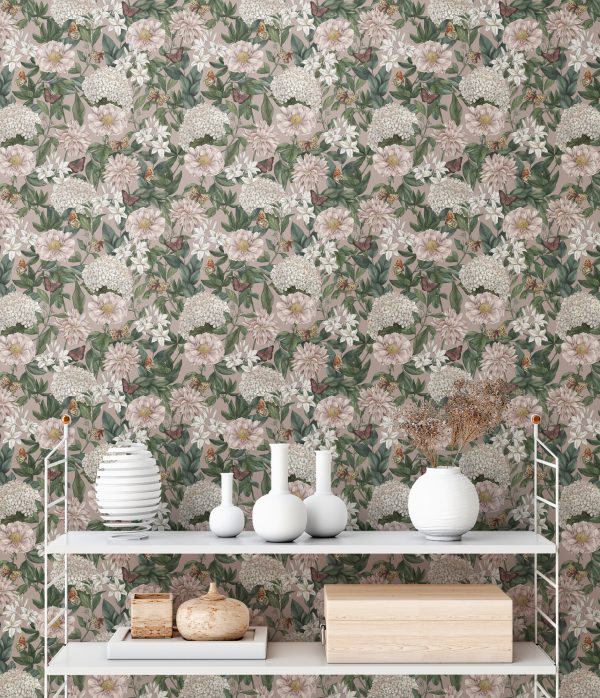 Medidas: 10,05 m x 0,53 m. Case: 53/0 cm (case recto). Calidad: Tejido no tejido. Estilo: Papel pintado flores. Estilo Floral. En color beige, verde y rosa.