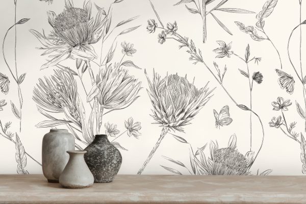 Medidas: 10,05 m x 0,53 m. Case: 53/0 cm (case recto). Calidad: Tejido no tejido. Estilo: Papel pintado plantas. Estilo Floral. En color blanco y negro.