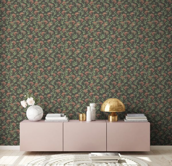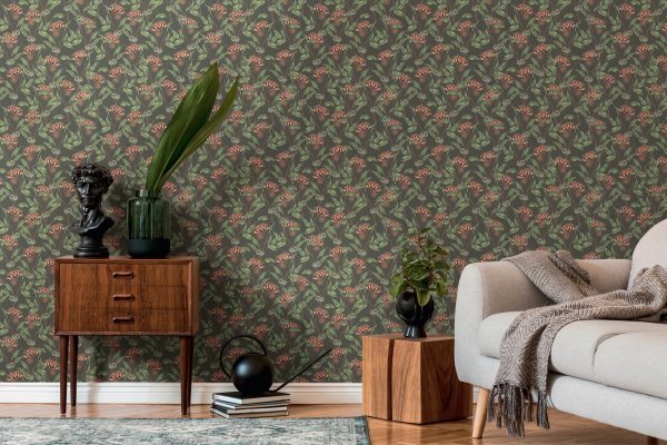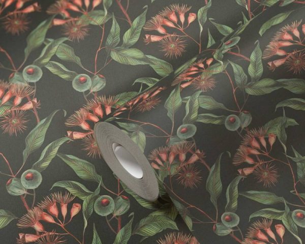 Medidas: 10,05 m x 0,53 m. Case: 53/0 cm (case recto). Calidad: Tejido no tejido. Estilo: Papel pintado hojas. Estilo Floral. En color negro, verde y rojo.