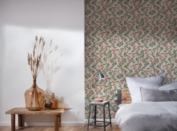 Medidas: 10,05 m x 0,53 m. Case: 53/0 cm (case recto). Calidad: Tejido no tejido. Estilo: Papel pintado hojas. Estilo Floral. En color rosa, rojo y verde.