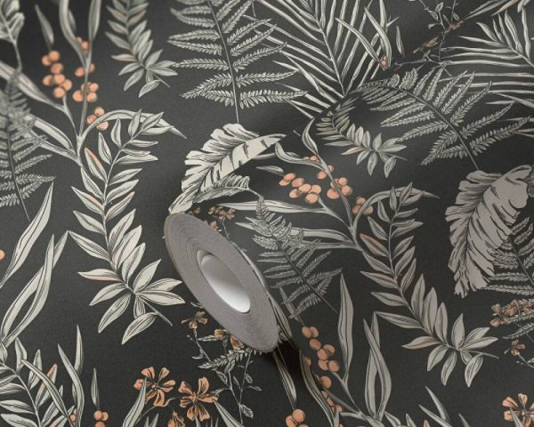 Medidas: 10,05 m x 0,53 m. Case: 53/0 cm (case recto). Calidad: Tejido no tejido. Estilo: Papel pintado hojas. Estilo Floral. En color negro, blanco y naranja.