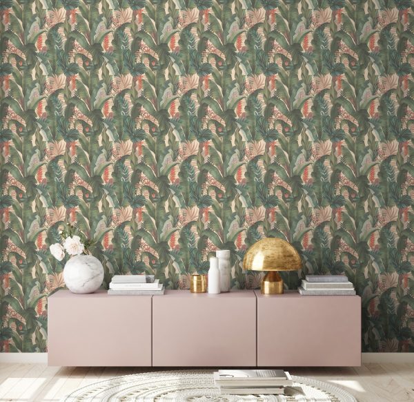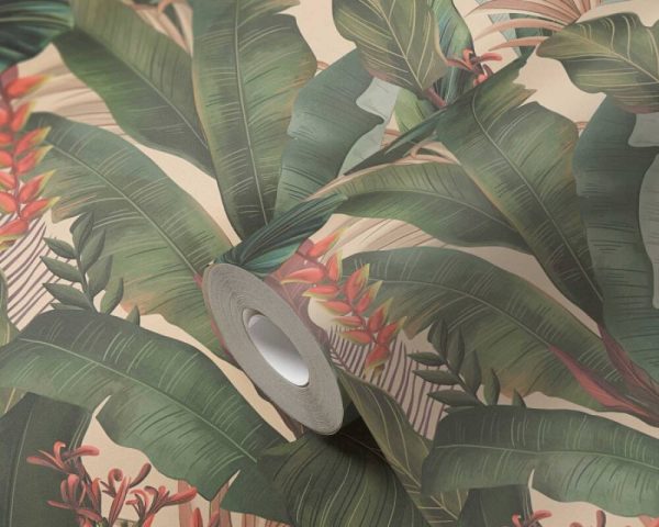 Medidas: 10,05 m x 0,53 m. Case: 53/0 cm (case recto). Calidad: Tejido no tejido. Estilo: Papel pintado hojas. Estilo Floral. En color verde, beige y rojo.