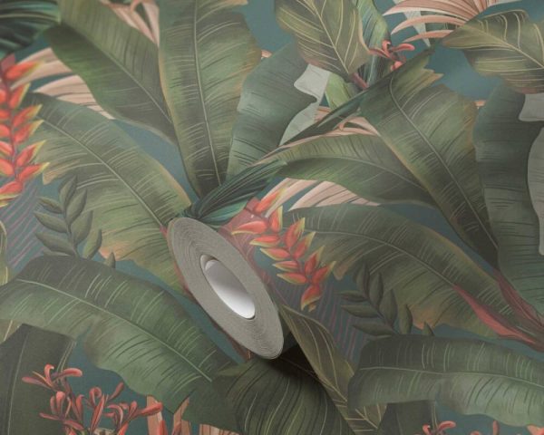 Medidas: 10,05 m x 0,53 m. Case: 53/0 cm (case recto). Calidad: Tejido no tejido. Estilo: Papel pintado hojas. Estilo Floral. En color verde, azul y rosa.