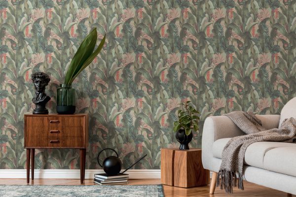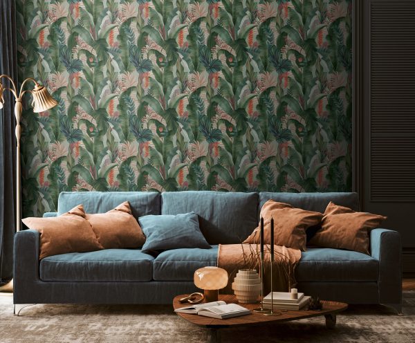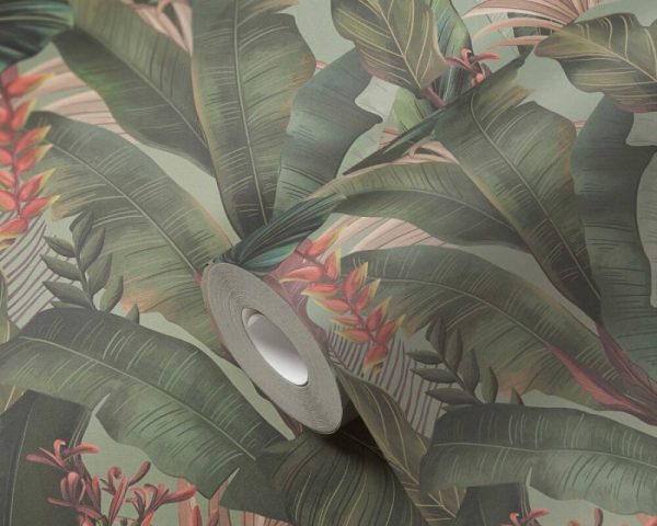 Medidas: 10,05 m x 0,53 m. Case: 53/0 cm (case recto). Calidad: Tejido no tejido. Estilo: Papel pintado hojas. Estilo Floral. En color verde, rojo y crema.