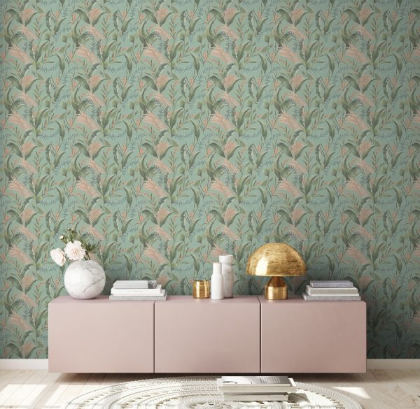 Medidas: 10,05 m x 0,53 m. Case: 53/0 cm (case recto). Calidad: Tejido no tejido. Estilo: Papel pintado hojas. Estilo Floral. En color verde, azul y rosa.
