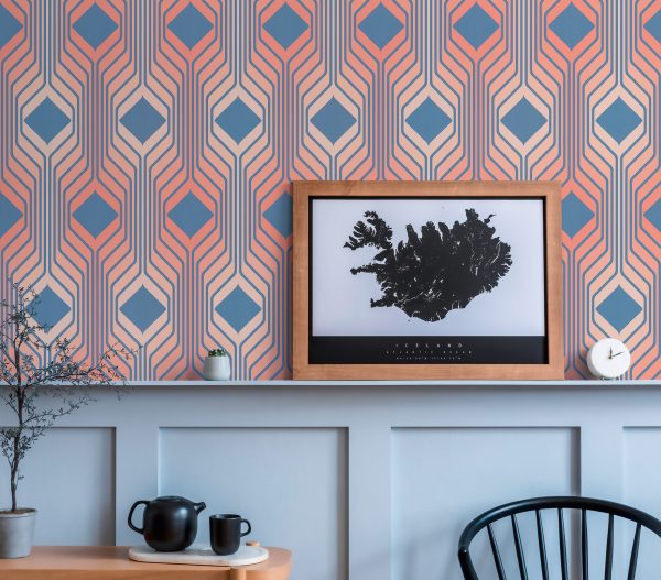 Medidas: 8,50 m x 0,53 m. Case: 53/0 cm (case recto). Calidad: tejido no tejido. Estilo: Papel pintado geométrico en color azul, rojo y rosa.