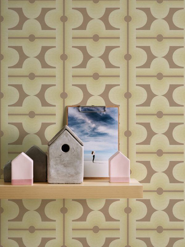 Medidas: 8,50 m x 0,53 m. Case: 16/0 cm (case recto). Calidad: tejido no tejido. Estilo: Papel pintado geométrico en color verde y marrón.