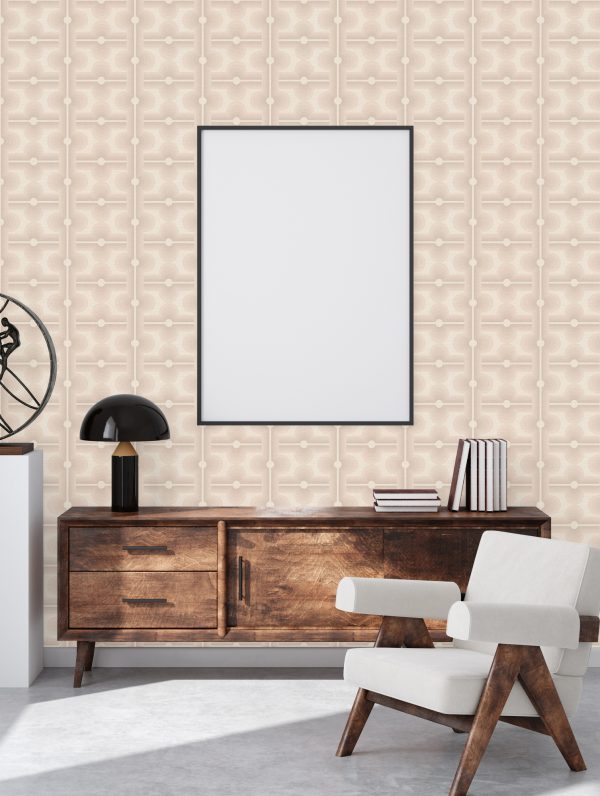 Medidas: 8,50 m x 0,53 m. Case: 16/0 cm (case recto). Calidad: tejido no tejido. Estilo: Papel pintado geométrico en color crema y beige.