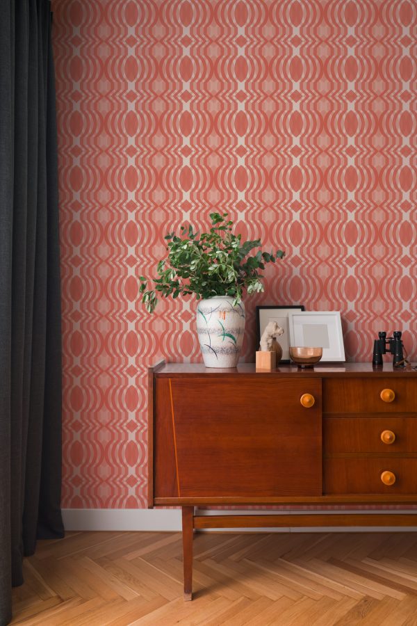 Medidas: 8,50 m x 0,53 m. Case: 18/0 cm (case recto). Calidad: tejido no tejido. Estilo: Papel pintado geométrico en color rojo.