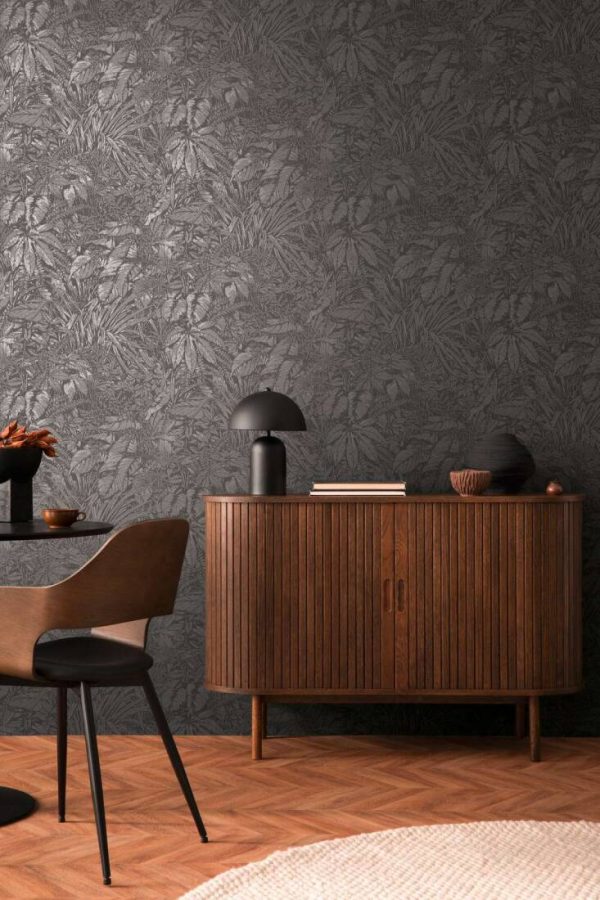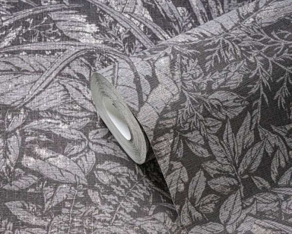 Medidas: 10,05 m x 0,53 m. Case: 64/32 cm (offset match). Calidad: tejido no tejido. Estilo: Papel pintado hojas de estilo floral en color gris y marrón metalizado.